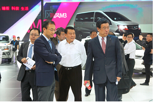 哎喲喂!徐總果真是專業(yè)出身。還拿出手機(jī)給瑞風(fēng)S3拍照啦,這是被S3的動(dòng)感外觀秒殺了么。還有右邊那位大哥,在認(rèn)真的記著啥呢,要記下冠軍的品質(zhì)做工,拿回去研究研究嗎?