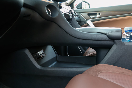 中控臺下面居然也設(shè)計了一個寬敞的儲物空間。