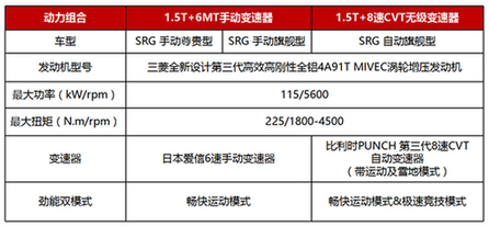 此次SRG車型為東南DX3帶來了全新動力組合,共3款不同配置車型。搭載三菱全新設(shè)計第三代高效高剛性全鋁4A91T的1.5T渦輪增壓發(fā)動機(jī),分別匹配日本愛信6速手動變速器和比利時PUNCH第三代8速CVT自動變速器,另集成了運動模式和雪地模式,賦予駕乘者強悍的動力體驗外,更有超強節(jié)能表現(xiàn)。