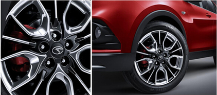 當(dāng)然,全新鍍鉻雙色鋁圈,質(zhì)感的提升不止一點點,并且設(shè)計新穎、搶眼。紅色剎車卡鉗的加入更增添了運動感,極具辨識度。