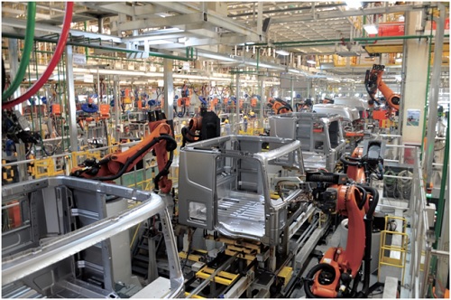 面對(duì)激烈的市場(chǎng)競(jìng)爭(zhēng),物流企業(yè)正在積極通過升級(jí)運(yùn)輸裝備,制定高效合理的物流配送方案,進(jìn)一步實(shí)現(xiàn)降本增效。因此,為保證物流運(yùn)輸裝備的產(chǎn)品品質(zhì),福田戴姆勒汽車對(duì)標(biāo)歐洲重卡領(lǐng)先工藝,進(jìn)行體系化智能化升級(jí),全面加快實(shí)施智能制造,線體自動(dòng)化率達(dá)80%。福田戴姆勒汽車超級(jí)卡車工廠以‘一網(wǎng)三智能’(一網(wǎng)指工業(yè)互聯(lián)網(wǎng),三智能指智能管理、智能產(chǎn)品、智能制造)為其頂層架構(gòu),實(shí)現(xiàn)了智能化產(chǎn)品的平臺(tái)化開發(fā)和快速落地化應(yīng)用。獲得國(guó)家工信部頒發(fā)的“基于工業(yè)互聯(lián)網(wǎng)的商用車智能制造試點(diǎn)示范”打造工業(yè)4.0示范基地,可謂是“中國(guó)制造 2025”和“德國(guó)工業(yè)4.0”融合的典范。