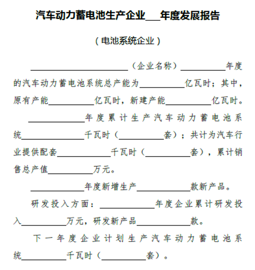(二十六)中國(guó)汽車(chē)動(dòng)力電池產(chǎn)業(yè)創(chuàng)新聯(lián)盟將對(duì)企業(yè)白名單實(shí)施動(dòng)態(tài)管理。已列入白名單的企業(yè)應(yīng)于每年 3 月 31日前將年度發(fā)展報(bào)告(見(jiàn)附件 2)發(fā)送至中國(guó)汽車(chē)動(dòng)力電池產(chǎn)業(yè)創(chuàng)新聯(lián)盟郵箱 lianmeng@glabat.com,同時(shí)建議企業(yè)每月向中國(guó)汽車(chē)動(dòng)力電池產(chǎn)業(yè)創(chuàng)新聯(lián)盟提供產(chǎn)品的產(chǎn)銷(xiāo)存情況。