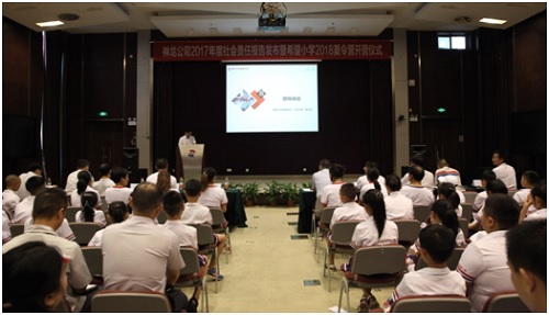 7月24日,神龍公司舉行《神龍汽車有限公司2017年社會責(zé)任報告》發(fā)布暨神龍汽車希望小學(xué)2018夏令營開營儀式。公司黨委書記、工會主席高大林出席儀式并講話,公關(guān)行政部部長兼黨群工作部部長趙曜解讀并發(fā)布2017年度社會責(zé)任報告。公司援建的兩所希望小學(xué)師生代表、公司各基層黨委領(lǐng)導(dǎo)和公司社會責(zé)任報告編寫小組成員參加了儀式。