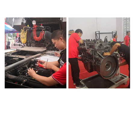 本次大賽分為預賽和全國總決賽兩個階段,主要針對重型卡車及相關內(nèi)容進行比拼,共設置了三個比賽項目,包括車輛二級維護選項,發(fā)動機機械部分的拆解、測量、組裝和調(diào)試,以及發(fā)動機管理系統(tǒng)(含后處理系統(tǒng))的故障診斷與排除。三項考試科目滿分各100分,考試成績分別占總成績的25%、25%與50%,歷時130分鐘。