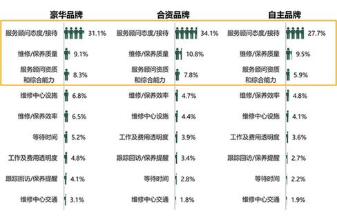 從各類品牌對比來看,豪華品牌客戶對進(jìn)一步提升服務(wù)顧問的資質(zhì)和綜合能力的呼吁聲較大。
