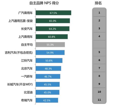 廣汽乘用車以67.5%的成績位居自主品牌的榜首,上汽通用五菱-寶駿和長安汽車分別以65.0%和64.2%的成績位于第二和第三,上汽乘用車得分60.8%,位居自主品牌的第四位,高于自主品牌行業(yè)水平。長城汽車、比亞迪及奇瑞汽車客戶凈推薦值(NPS)得分遠(yuǎn)低于自主品牌行業(yè)水平,同時也在全部調(diào)查的43個品牌中排在墊底位置。由此可見三大自主品牌除一味的提升產(chǎn)品銷量的同時,在客戶服務(wù)體驗和客戶關(guān)系方面需亟待改善。