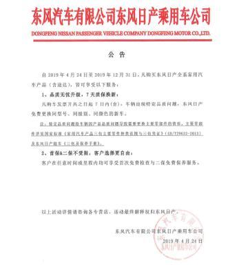 東風(fēng)日產(chǎn)“7天質(zhì)保煥新”及“首、二保不受限”服務(wù)公告