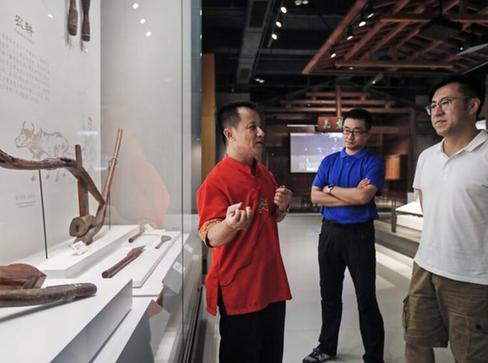 海南省博物館副館長王輝山在介紹黎族用黃花梨制作的農(nóng)具
