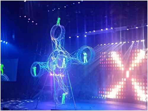 圖為上市發(fā)布會上的雜技表演(張恒 攝)
