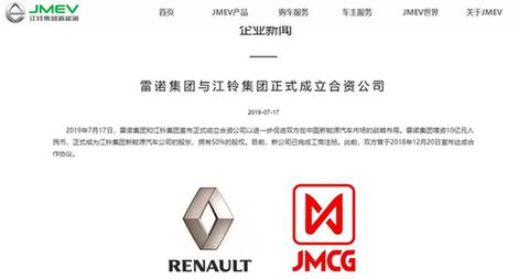 圖為江鈴集團(tuán)新能源官網(wǎng)公布雷諾集團(tuán)與江鈴集團(tuán)合資的消息