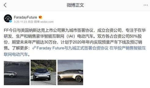 法拉第未來官方微博發(fā)布的FF 91參展信息
