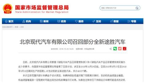 圖為北京全新途勝首次召回的召回信息(圖片來源:國家市場監(jiān)督管理總局官網(wǎng))