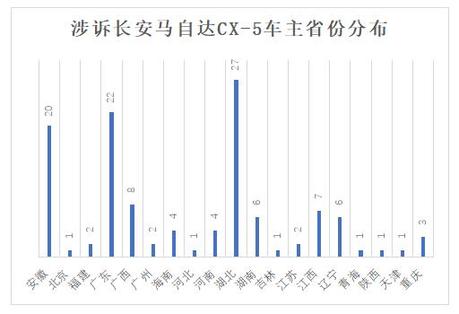 向本網(wǎng)站投訴的長(zhǎng)安馬自達(dá)CX-5車主省份分布情況
