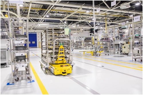 這在筆者看過(guò)的中國(guó)汽車制造企業(yè)中還是第一次見(jiàn)到,工作人員介紹說(shuō):“我們的智能倉(cāng)儲(chǔ)可以和亞馬遜媲美,它在基地2層的結(jié)構(gòu)基礎(chǔ)上巧思妙想,將倉(cāng)儲(chǔ)和物流與生產(chǎn)線融合起來(lái),不僅實(shí)現(xiàn)了1層與2層的連通,更基于智能化管理體系,通過(guò)AGC小車實(shí)現(xiàn)全無(wú)人化操作,并且能夠更加快速的響應(yīng)。值得一提的是,擔(dān)當(dāng)運(yùn)輸任務(wù)的AGC小車擁有1.5米半徑的鷹眼觀察系統(tǒng),確保整個(gè)運(yùn)輸過(guò)程安全有序?!?/p>