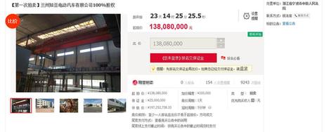 某司法拍賣平臺(tái)公布的知豆拍賣信息