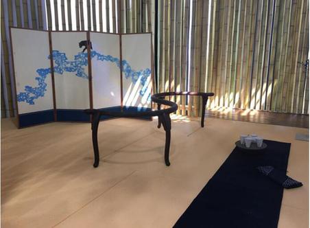 設(shè)計(jì)中的極致,在于對(duì)“妙”的追求。它沒有某種特定的呈現(xiàn)方式,而是通過元素間精妙絕倫的排列組合,從而呈現(xiàn)富有內(nèi)涵、令人著迷的感官體驗(yàn)。當(dāng)觀者來到第三單元,沉浸在未來茶室的空間裝置內(nèi),將親身感受到源自雷克薩斯UX車型內(nèi)室的東方建筑概念“緣側(cè)”所帶來的獨(dú)特體驗(yàn)——內(nèi)與外、人與自然之間,恰到好處的連接。設(shè)計(jì)師邵帆(昱寒)、陶藝家樂子硯、藝術(shù)家林于思為茶室內(nèi)部專門打造了兼具凌厲與柔美的茶藝器具,水墨屏風(fēng),以及精巧的刺子繡坐墊……呈現(xiàn)充滿人文和東方雅致生活的人居空間,令人從熱鬧的城市中,忽然入禪境,獲得喧囂繁華中的心安之境。