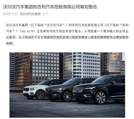沃爾沃官方宣布整合信息(圖片來(lái)自沃爾沃汽車(chē)集團(tuán)官方公眾號(hào))