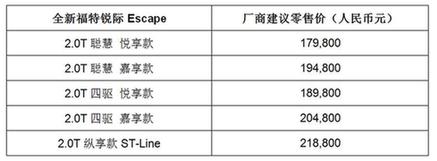 更新后的全新福特銳際車型及廠商建議零售價