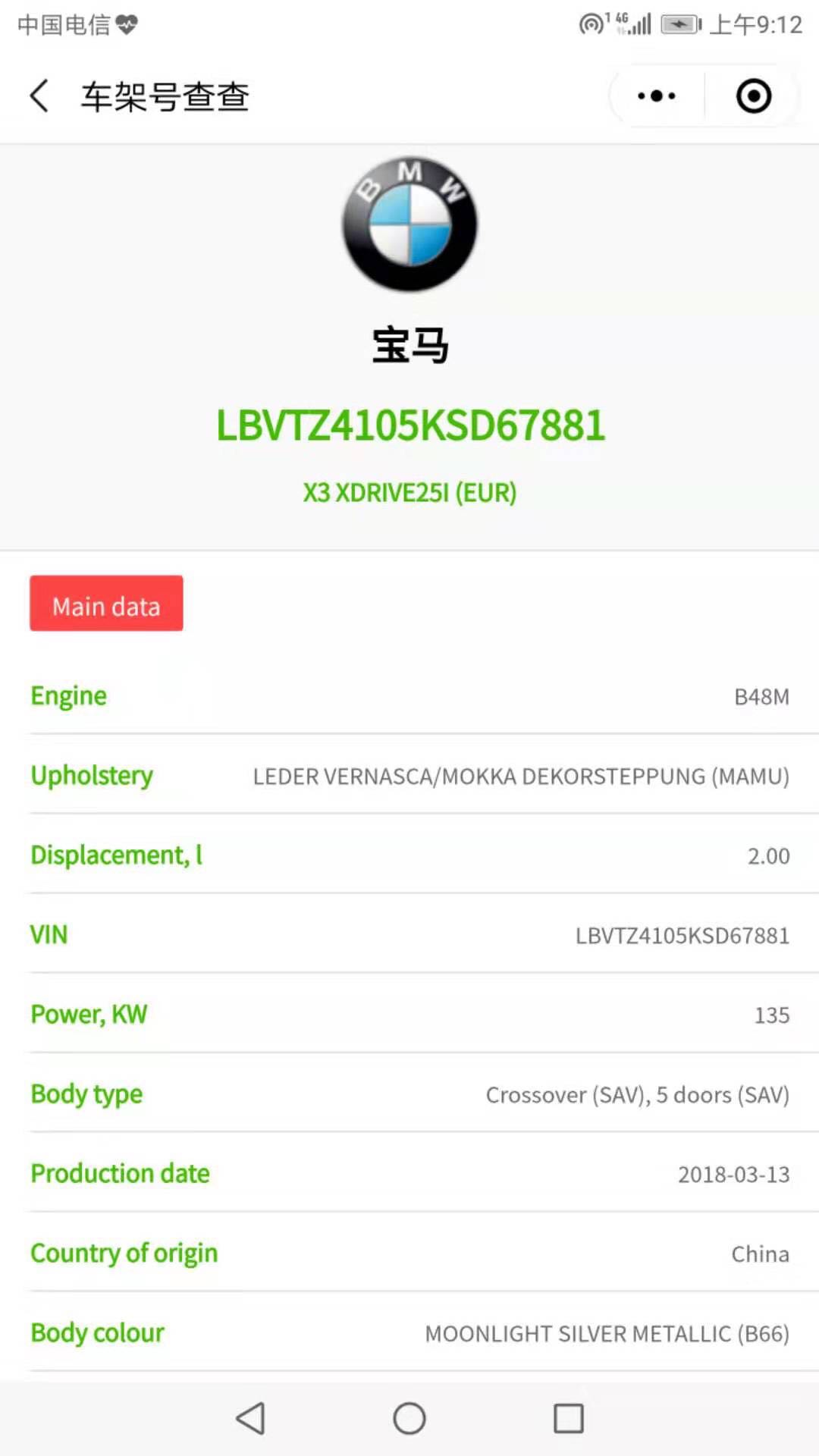 購(gòu)買時(shí)銷售提供的所有資料包括車輛銘牌顯示該車生產(chǎn)日期為2018年8月。開了幾個(gè)月后我去售后保養(yǎng)時(shí)被告知該車的生產(chǎn)日期是2018年3月,立刻拍了照片。回家后通過車架號(hào)VIN碼查詢后顯示該輛車的生產(chǎn)日期為18年3月。這與購(gòu)買時(shí)被告知的生產(chǎn)日期不符,且提早了半年之久。華晨寶馬廠家隨意變更車輛生產(chǎn)日期,4S店銷售顧問故意隱瞞,給本人購(gòu)車的決策造成重大誤解,超過一年以上的庫(kù)存車對(duì)我后續(xù)駕駛及公共安全帶來隱患,并給車輛帶來額外的折舊損失。涉嫌欺詐、侵犯消費(fèi)者知情權(quán)!