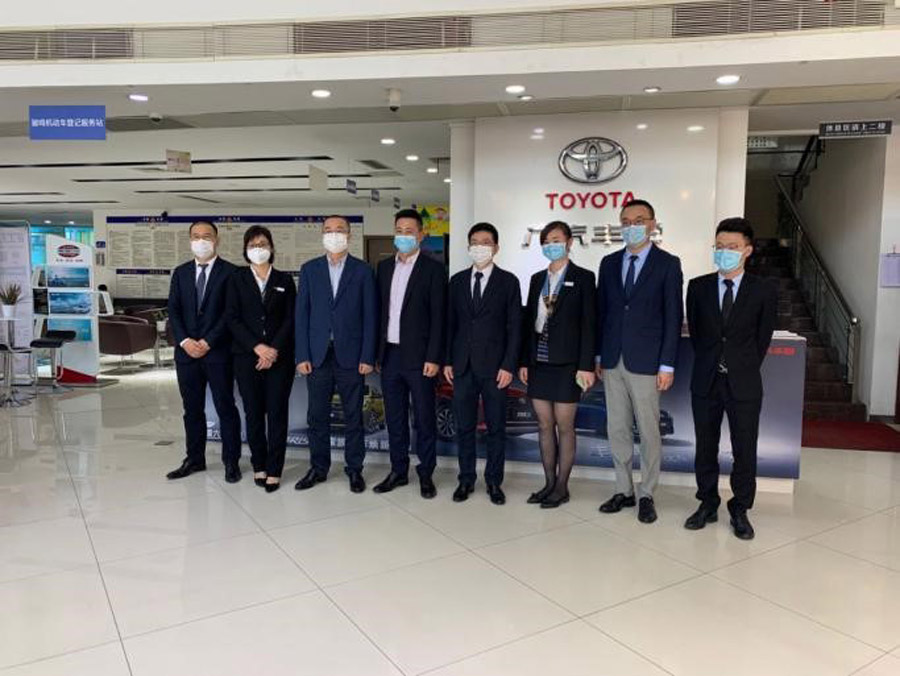 廣汽豐田執(zhí)行副總經理文大力一行與東莞經銷店相關負責人合影留念(圖片來源:廣汽豐田官網)