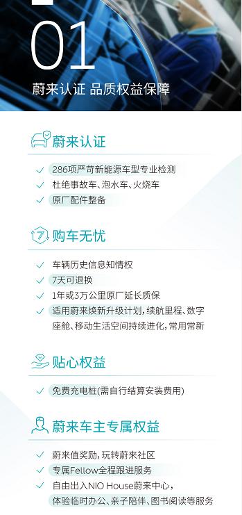 此時,作為造車新勢力頭部的蔚來汽車入場,以官方認證二手車的手段,有效介入二手車市場,實現(xiàn)資產(chǎn)有效管控?;蛟S會為后續(xù)搭建全面的品牌自有二手車驗車和銷售服務(wù)探路,也為提升新能源汽車保值率而做出的規(guī)范提供參照。