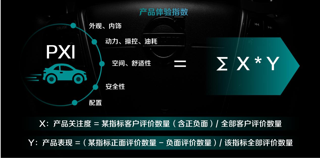 產(chǎn)品體驗(yàn)質(zhì)量評(píng)價(jià)指數(shù)PXI以產(chǎn)品指標(biāo)關(guān)注度為權(quán)重,結(jié)合產(chǎn)品指標(biāo)表現(xiàn)得出產(chǎn)品體驗(yàn)得分。多個(gè)熱門車型的產(chǎn)品體驗(yàn)質(zhì)量評(píng)價(jià)指數(shù)經(jīng)過算法計(jì)算,最終得出品牌的產(chǎn)品體驗(yàn)質(zhì)量評(píng)價(jià)指數(shù)。