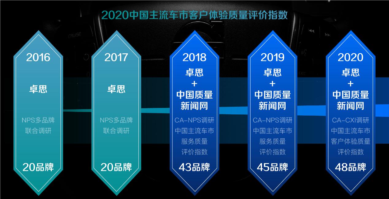 在2018年,更與中國質(zhì)量新聞網(wǎng)合作開展CA-NPS調(diào)研,推出“中國主流汽車市場(chǎng)服務(wù)體驗(yàn)評(píng)價(jià)指數(shù)”。2019年的CA-NPS擴(kuò)充為銷售服務(wù)指數(shù)和售后服務(wù)2個(gè)指數(shù)。2020年,CA-NPS調(diào)研升級(jí)為CA-CXI客戶體驗(yàn)調(diào)研,包含CA-NPS調(diào)研和CA-PXI調(diào)研兩部分,調(diào)研結(jié)果將全方位、全周期、數(shù)字化地量化各項(xiàng)客戶體驗(yàn)。
