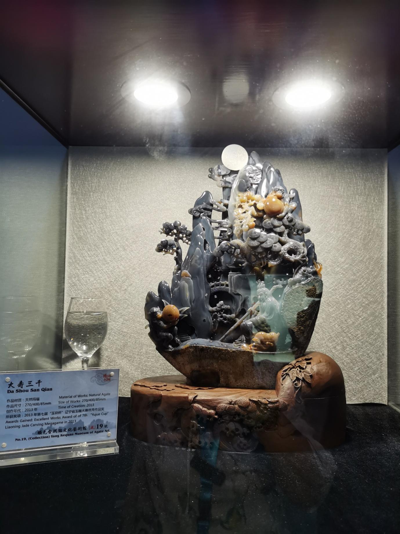 我們有幸見到了楊克全本人,這位三代傳承、國家級大師實(shí)際是不善言辭的,藝術(shù)館的相關(guān)人士向筆者介紹:瑪瑙,在世界各地都有儲藏,但是