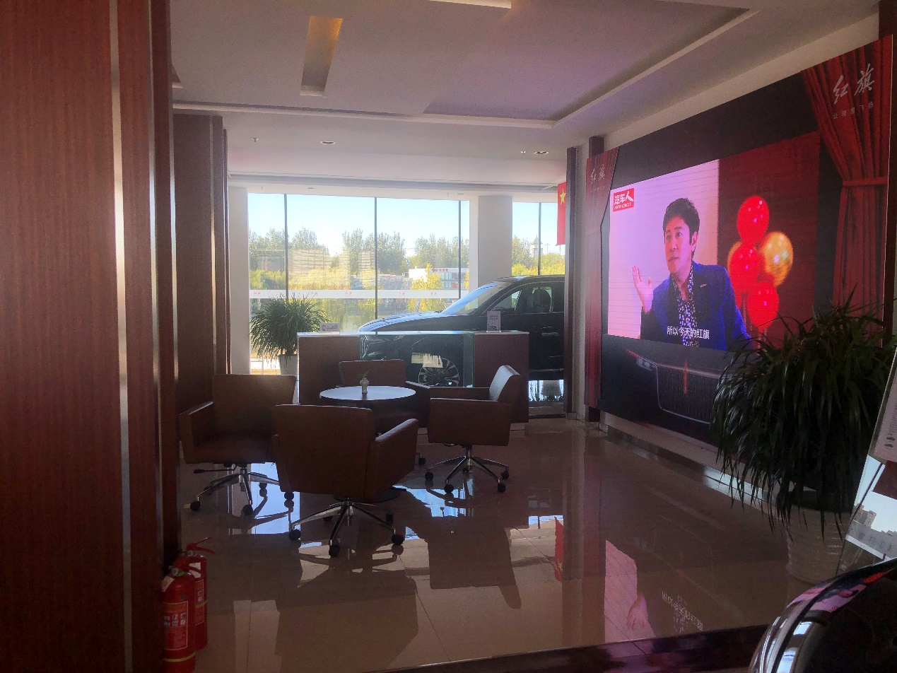 穿過紅旗的迎賓橫幅,筆者駕車抵達(dá)4S店的專用停車場。讓人眼前一亮的就是紅旗在2019年煥新升級的門店外觀,金底紅字在正午的陽光下熠熠生輝,給人以欣欣向榮的感覺。整個(gè)門店分為上下兩層,一層是保險(xiǎn)售后區(qū),二層是展區(qū)。