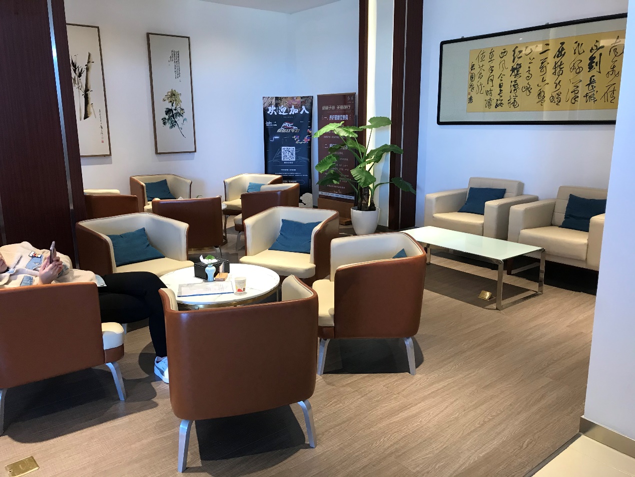獨(dú)立顧客休息區(qū)中,剛簽完合同的顧客放松的等待辦理手續(xù)(余昶 攝)