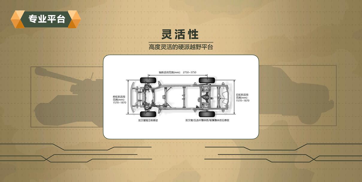 坦克平臺坐擁全球化、智能化、模塊化、高可靠性、高靈活性五大特征,具備同級別最優(yōu)的強悍動力組合、越野能力和智能的越野方式三大核心優(yōu)勢。