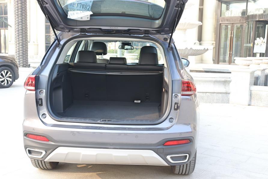 車側(cè)處,從前向后揚起的線條,以及稍長的前后懸設(shè)計,使整車看起來更為高大;車頂后擺的線條于車身腰線相呼應,為整車提供強有力的運動視覺效果;19寸輪轂的使用同樣襯托出整車的“大”,且更具時尚感。