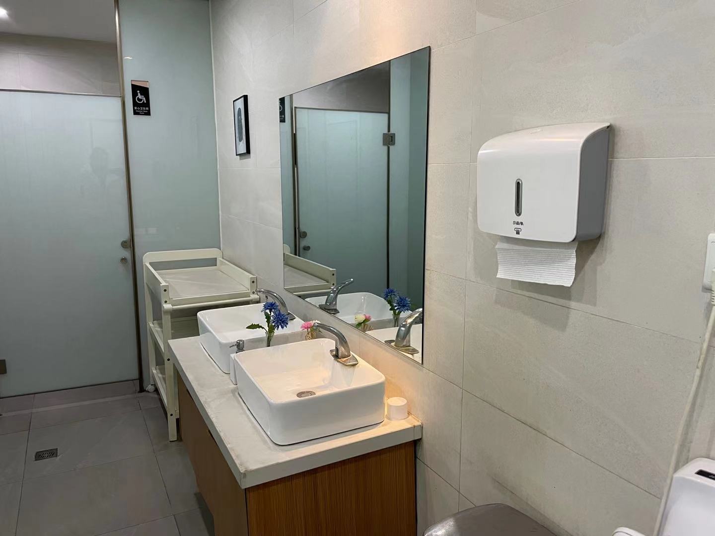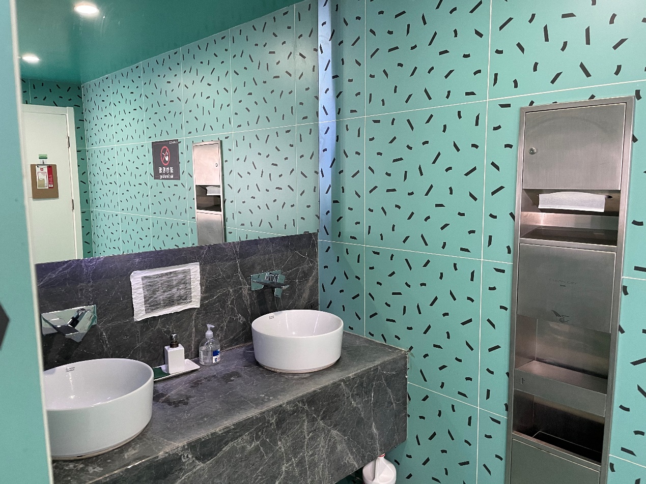 洗手間很有設(shè)計(jì)感,綠色搭配黑色很耐看,配套設(shè)施齊全,也沒有奇怪的味道。