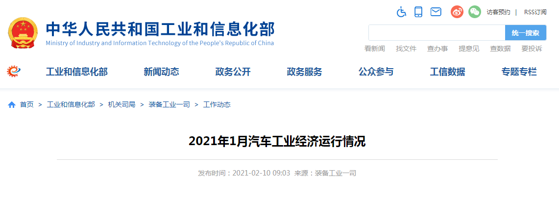 2月10日,工業(yè)和信息化部信息中心通過微信公眾號“工信微報”發(fā)布了2021年1月汽車工業(yè)經(jīng)濟運行情況。數(shù)據(jù)顯示,2021年1月,我國汽車工業(yè)繼續(xù)保持良好發(fā)展態(tài)勢,去年同期基數(shù)較低,本月汽車產(chǎn)銷同比增幅較大。