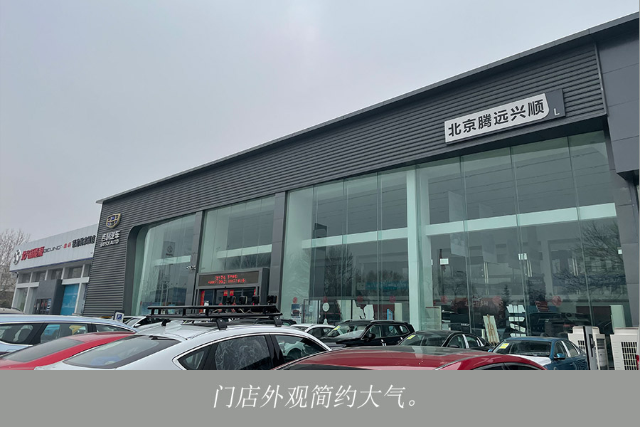 筆者率先來到吉利4S店,這家門店采用吉利全國統(tǒng)一的灰色外觀裝飾,用樸素二字形容再貼切不過。店外停滿未上牌的新車,甚至連入口斜坡處都停有新車。進(jìn)入店內(nèi),整體顏色采用米白和胡桃木搭配,為的是打造典雅的感覺。
