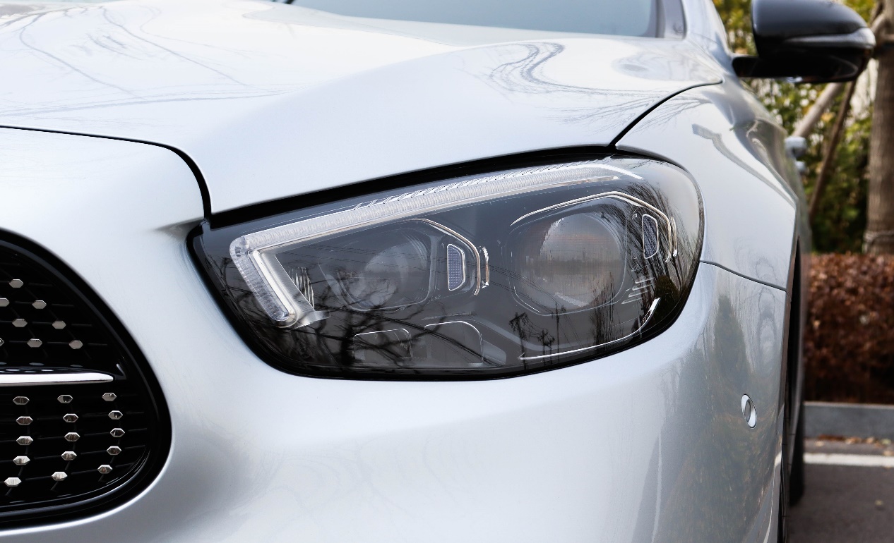 本次試駕的標(biāo)軸車型是運(yùn)動(dòng)款,采用大標(biāo)設(shè)計(jì),奔馳定義的“峰眉皓目”前大燈,“龍鱗鳳羽”點(diǎn)陣式LED尾燈都在。當(dāng)然,這個(gè)配置的車型沒有多幾何光束的特色功能,奔馳提供選裝,標(biāo)軸車型需要14300元,比長軸車型貴了800元,多出來的錢大概是給配件掏的船票錢。