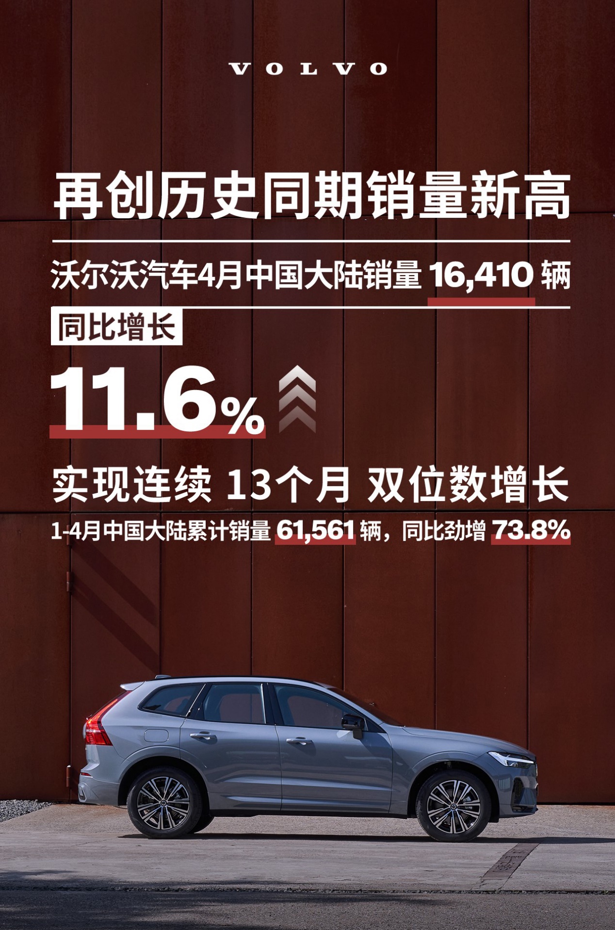 中國質(zhì)量新聞網(wǎng)訊 (張陽)繼2021年創(chuàng)下品牌史上最佳第一季度銷量紀(jì)錄,沃爾沃汽車4月市場表現(xiàn)持續(xù)攀高,在中國大陸市場共售出16410輛,同比增長11.6%,實(shí)現(xiàn)了連續(xù)13個月的雙位數(shù)增長,同時也創(chuàng)造了品牌史上4月銷量新高。