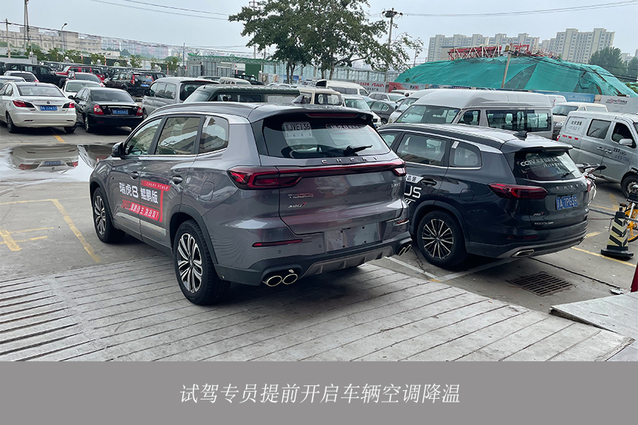 來到試駕環(huán)節(jié),由于筆者的意向車型T77試駕車出現(xiàn)故障,該銷售提出了試駕搭載相同動(dòng)力總成的T55車型的解決方案。進(jìn)入試駕車內(nèi),該車的衛(wèi)生狀況良好,沒有看到過多灰塵和殘留的垃圾碎屑,由于車輛已提前開啟空調(diào),上車時(shí)并沒有感受到高溫帶來的不適。首先,該銷售在車內(nèi)大致介紹了試駕路線。在試駕過程中,該銷售引導(dǎo)進(jìn)行了車輛的動(dòng)力,車機(jī)系統(tǒng)和各種駕駛模式的體驗(yàn),并且詢問了筆者的感受,服務(wù)意識較強(qiáng)。