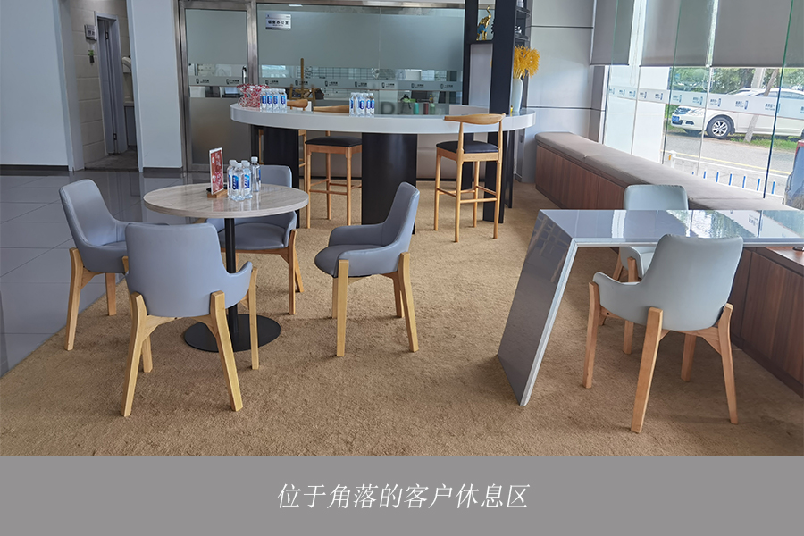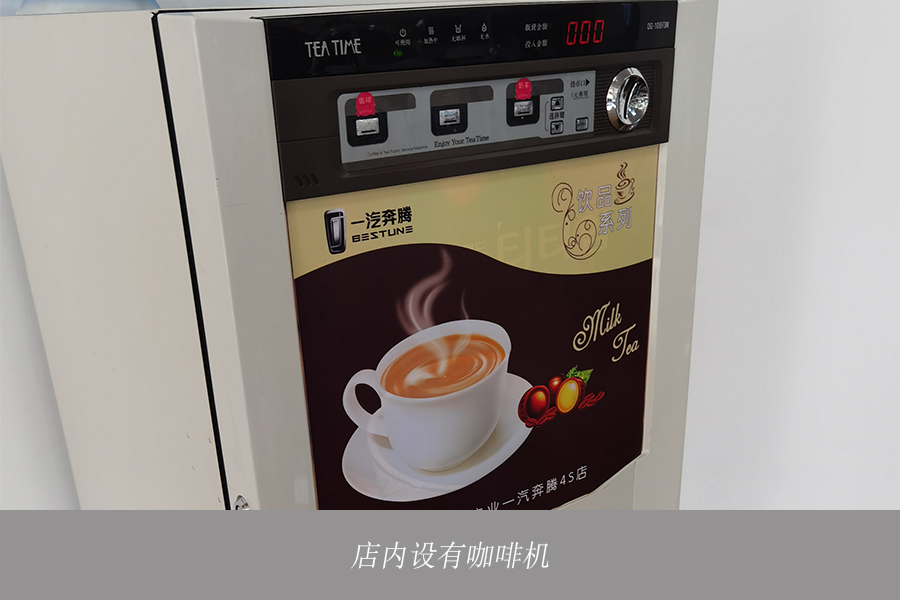 在店內(nèi)一角專門設(shè)置了鋪設(shè)地毯的客戶休息區(qū),桌椅等設(shè)施較新且瓶裝水?dāng)?shù)量充足,地面和臺面上沒有發(fā)現(xiàn)異物和污漬,十分干凈。值得一提的是,雖然展廳內(nèi)沒有設(shè)置客戶休息室,但該店準(zhǔn)備了自助熱飲機(jī),讓客戶在維修保養(yǎng)的等待期間多了些選擇。