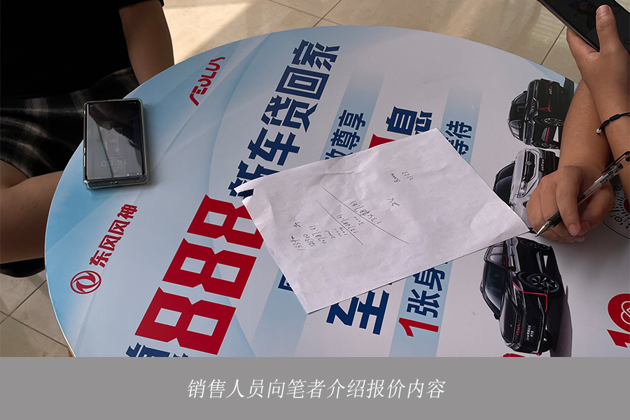 試駕結(jié)束回到店內(nèi),該銷售提供了礦泉水并邀請筆者就坐,開始了價(jià)格洽談環(huán)節(jié)。銷售人員拿出了銷售意向書開始填寫相關(guān)價(jià)格信息,主動(dòng)向筆者解釋了價(jià)格明細(xì),并且對于筆者的疑問一一進(jìn)行了解答,交談十分流暢自然。