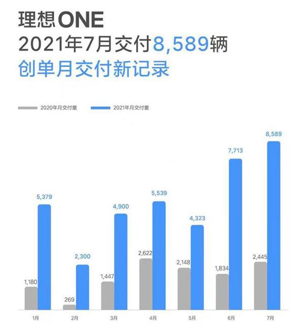 每月銷(xiāo)量中最具看點(diǎn)的還屬造車(chē)新勢(shì)力,每每公布銷(xiāo)量數(shù)據(jù)都如同百米賽跑一般有著意想不到的變化。這個(gè)7月可以稱之為理想汽車(chē)的逆襲,從具體數(shù)據(jù)來(lái)看,理想汽車(chē)憑借單一車(chē)型理想ONE成為銷(xiāo)量榜第一名,單月銷(xiāo)量首次超過(guò)八千輛,同比增長(zhǎng)251%。