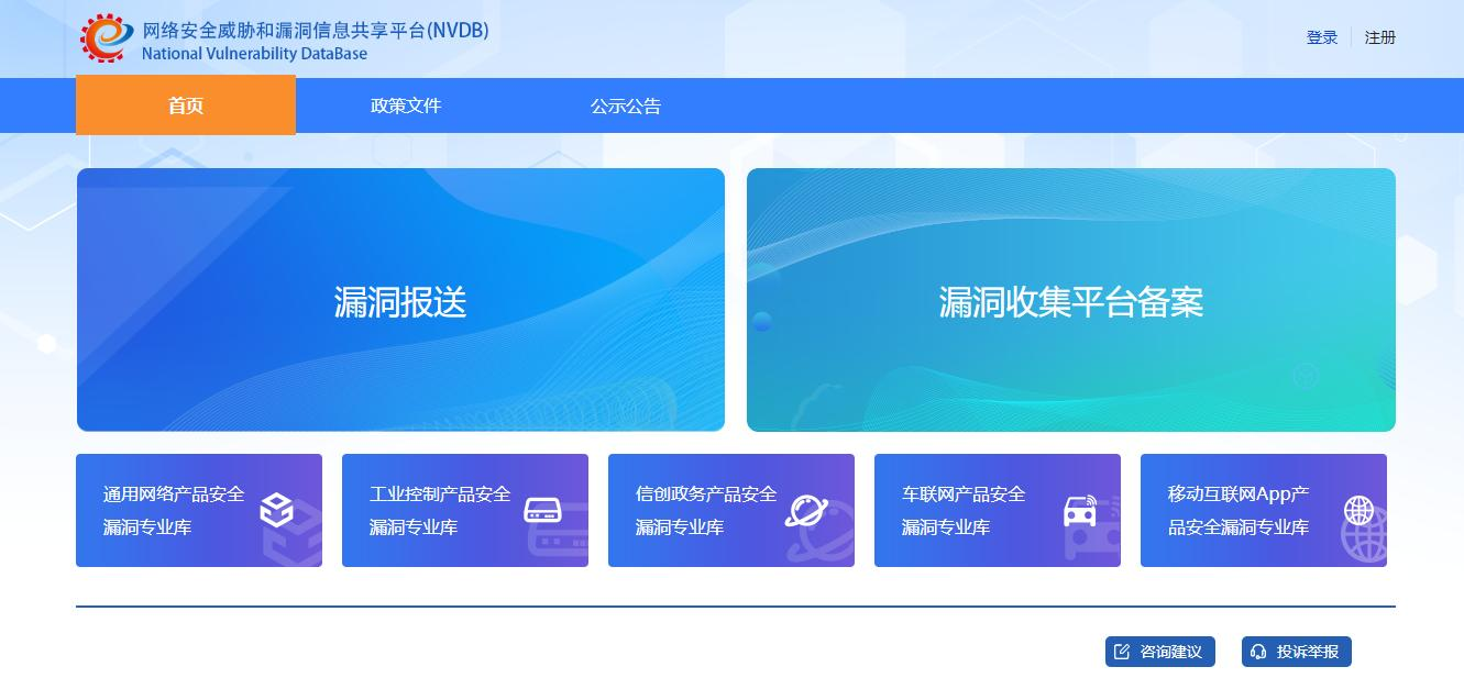 工信部網絡安全威脅和漏洞信息共享平臺由中國信息通信研究院會同國家工業(yè)信息安全發(fā)展研究中心、中國軟件評測中心、中國汽車技術研究中心等國家網絡安全專業(yè)機構共同建設。平臺包括通用網絡產品安全漏洞專業(yè)庫(https://www.cnvdb.org.cn)、工業(yè)控制產品安全漏洞專業(yè)庫(https://www.cics-vd.org.cn)、移動互聯(lián)網App產品安全漏洞專業(yè)庫(https://cappvd.cstc.org.cn)、車聯(lián)網產品安全漏洞專業(yè)庫(https://cavd.org.cn)等,支持開展網絡產品安全漏洞技術評估,督促網絡產品提供者及時修補和合理發(fā)布自身產品安全漏洞。
