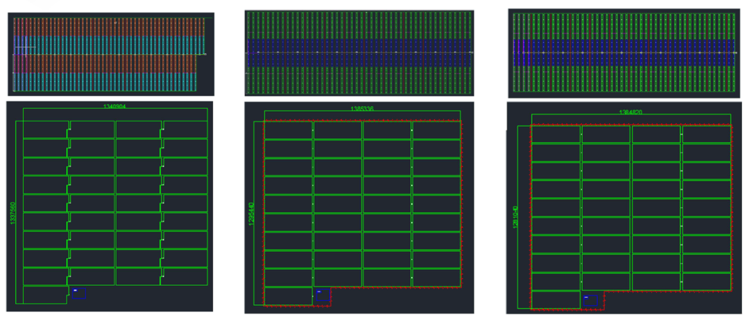 按照此設(shè)計(jì)原則對(duì)應(yīng)三款組件的電站系統(tǒng)配置及Layout 排布圖如下: