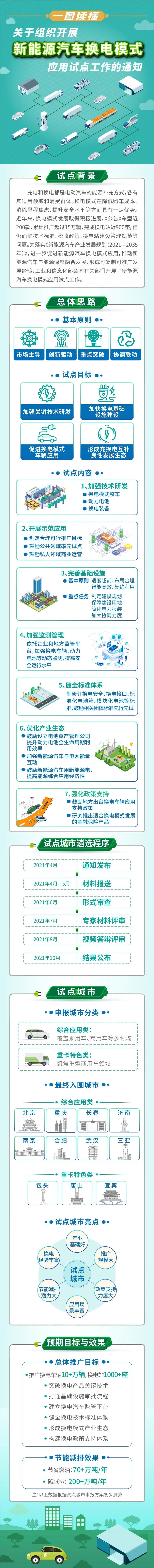 為貫徹落實(shí)《新能源汽車產(chǎn)業(yè)發(fā)展規(guī)劃(2021—2035年)》,促進(jìn)新能源汽車換電模式創(chuàng)新發(fā)展,工業(yè)和信息化部會(huì)同相關(guān)部門于今年4月印發(fā)《關(guān)于組織開展新能源汽車換電模式應(yīng)用試點(diǎn)工作的通知》。在各城市申報(bào)和省級(jí)主管部門審核基礎(chǔ)上,經(jīng)形式審查、專家材料評(píng)審、視頻答辯評(píng)審,綜合確定了此次試點(diǎn)城市名單。