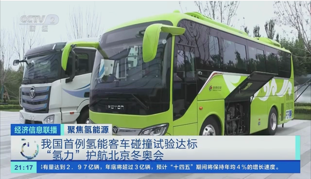 央視財經(jīng)頻道《經(jīng)濟信息聯(lián)播》報道福田歐輝70兆帕氫燃料客車碰撞試驗