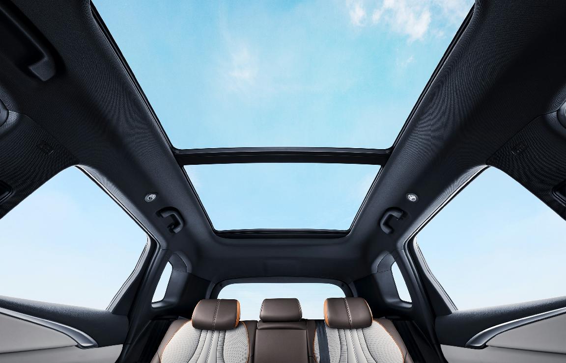 2022款宋Pro DM-i的內飾設計由比亞迪首席內飾總監(jiān)——米開勒·帕加內蒂領銜打造,同樣質感十足。全新內飾配色麒麟棕+蒼穹灰讓人眼前一亮;前排重新設計的“龍脊”一體式座椅,包裹性與舒適性更佳;后排座椅靠背角98—118度多級可調,頭、肩、腰全觸點支撐;2712mm的超大軸距帶來了寬適的大五座空間,配合廣角全景天窗,帶來越級的舒適享受。