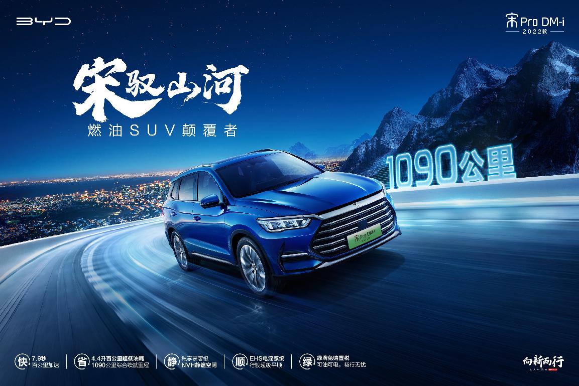 2022款宋Pro DM-i搭載了比亞迪DM-i超級混動技術,超快,百公里加速7.9秒,堪比2.0T燃油車動力;超省,百公里虧電油耗低至4.4L;超長,在滿油滿電情況下綜合續(xù)航達到1090km。