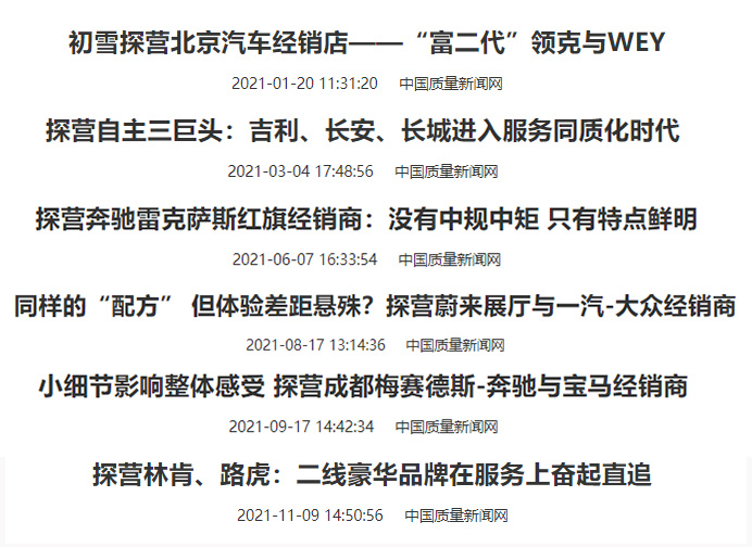 中國(guó)質(zhì)量新聞網(wǎng)汽車資訊自2021年推出《品質(zhì)探店》欄目,致力于探索各主流汽車品牌在銷售、售后服務(wù)上的特點(diǎn),為消費(fèi)者提供各汽車品牌在服務(wù)層面的優(yōu)缺點(diǎn),令消費(fèi)者“未進(jìn)店,先體驗(yàn)”。