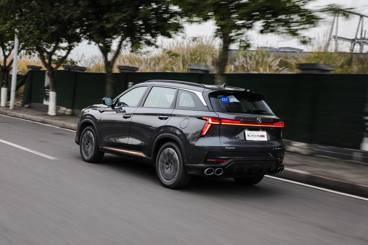 第二代CS75PLUS車身側(cè)面和尾部同樣繼承了上一代產(chǎn)品的特點,改變在于車身側(cè)裙位置增設(shè)了一條金色飾件,有提拉整車視覺亮度的效果。在尾部依舊保留了運動感十足的擴散器和四出排氣尾喉設(shè)計,而尾燈組則與車頭相呼應(yīng)換成了貫穿設(shè)計,燈光質(zhì)感優(yōu)秀。此外,不同于上一代CS75PLUS慣用的紅色車身裝飾,新款更多是加入了黑色鋼琴烤漆和鍍鉻飾條,第二代CS75PLUS的質(zhì)感大幅升級,設(shè)計審美也有著顯著提高。