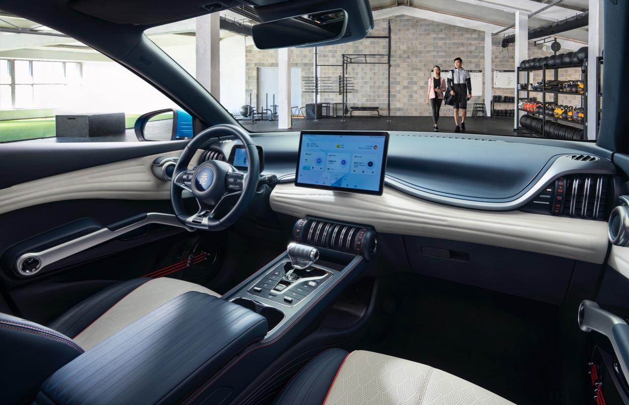 元PLUS內(nèi)飾由速度藍(lán)、力量灰雙色搭配,中控臺以一條有力的龍須線條承載,貫穿門板和儀表板;一體式運動座椅兼顧安全、舒適與動感;啞鈴式空調(diào)出風(fēng)口、跑步機式中央扶手臺、琴弦式門板裝飾件等細(xì)節(jié)處的精巧設(shè)計,讓元PLUS的車內(nèi)極具個性。